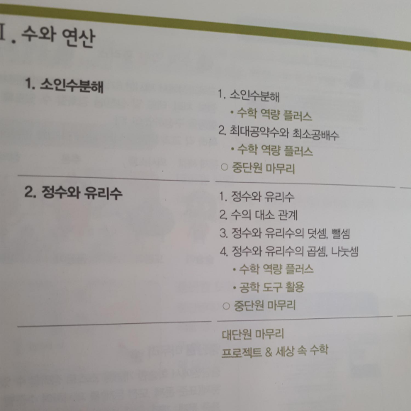 1단원은 소인수분해와 정수와 유리수를 배운다.