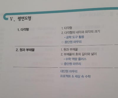 5단원은 다각형과 원과 부채꼴 단원이다.