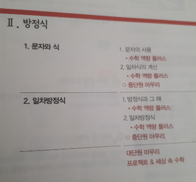 2단원은 문자와 식, 일차방정식이 주요 학습내용이다.